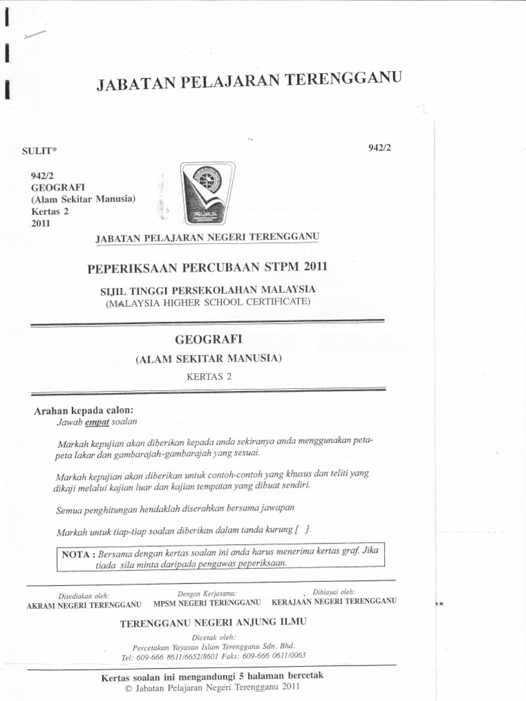 Percubaan Stpm Terengganu 2011 Soalan Geografi Alam Sekitar Manusia Kertas 2 Pdf